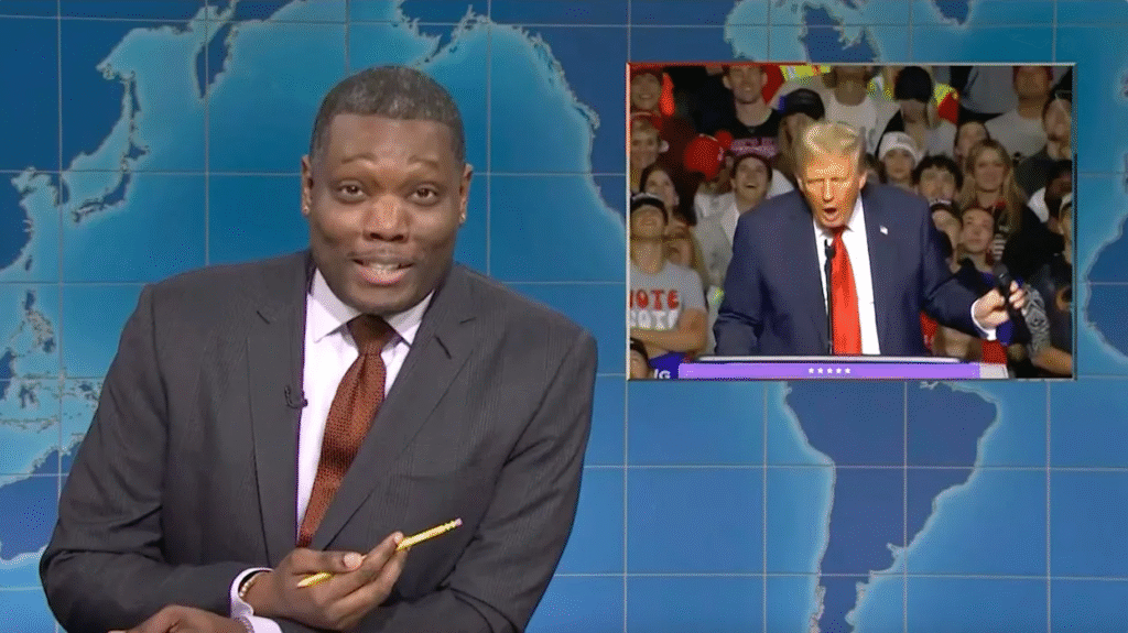 But Jost wasn’t done. SNL’s other co-host, Michael Che, joined in on the fun, quipping, “The Trump family is America’s longest-running reality show that refuses to get canceled.” This line landed with pinpoint accuracy, striking a chord with the audience who were all too familiar with the endless media coverage surrounding the Trump family. The audience roared with laughter as Che’s words hung in the air, a sharp commentary on the family’s persistent presence in the public eye despite numerous controversies.